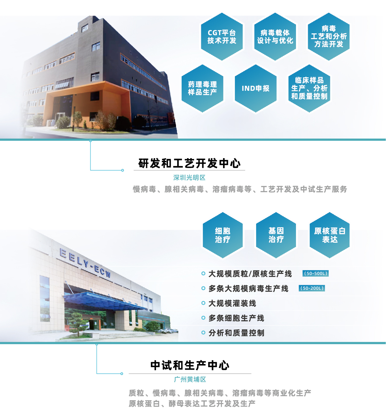 目前有深圳光明區(qū)研發(fā)和工藝開發(fā)中心和廣州黃埔區(qū)中試和生產(chǎn)中心兩大基地?;亟ㄔO(shè)基于QbD理念設(shè)計,具備符合國際標(biāo)準(zhǔn)的cGMP生產(chǎn)設(shè)施,獨(dú)立的GMP生產(chǎn)線,全封閉系統(tǒng),有效防止批間交叉污染;另外,產(chǎn)能布局靈活,滿足不同IND到BLA到商業(yè)化規(guī)模的生產(chǎn)。