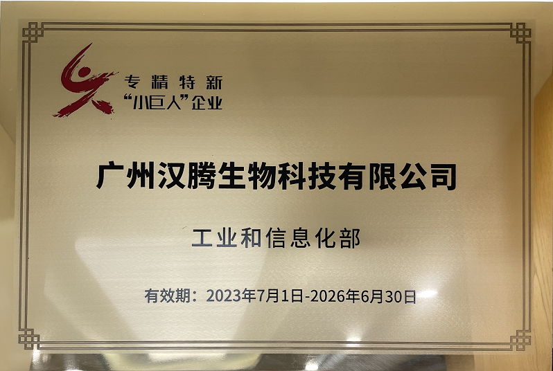 此次榮獲國(guó)家級(jí)“專(zhuān)精特新”企業(yè)稱(chēng)號(hào),距離上一次繼榮獲廣東省專(zhuān)精特新企業(yè)稱(chēng)號(hào)不到一年,標(biāo)志著政府主管部門(mén)高度認(rèn)可和充分肯定漢騰生物的發(fā)展?jié)摿?、?chuàng)新能力和專(zhuān)業(yè)技術(shù)水平!