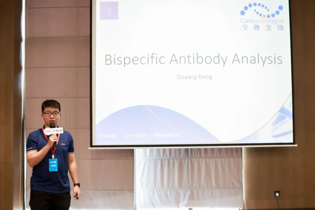 漢騰生物理化分析經(jīng)理歐陽(yáng)東受邀出席交流會(huì)并在會(huì)上做了“雙抗的質(zhì)量分析”的主題報(bào)告。在論壇會(huì)上與各位同仁討論了雙抗行業(yè)發(fā)展現(xiàn)狀以及開發(fā)中相關(guān)技術(shù)問(wèn)題和解決方案?;诓煌p抗的結(jié)構(gòu)特點(diǎn),工藝開發(fā)中可能會(huì)存在不同的風(fēng)險(xiǎn)。比如,非對(duì)稱雙特異性抗體、對(duì)稱雙特異性抗體分別會(huì)出現(xiàn)錯(cuò)誤配對(duì)及碎片和聚集的問(wèn)題。在分析檢測(cè)過(guò)程中,可以根據(jù)結(jié)構(gòu)特點(diǎn)制定不同的分析策略來(lái)監(jiān)測(cè)關(guān)鍵質(zhì)量屬性(CQAs),為工藝開發(fā)提供進(jìn)一步的指導(dǎo)。