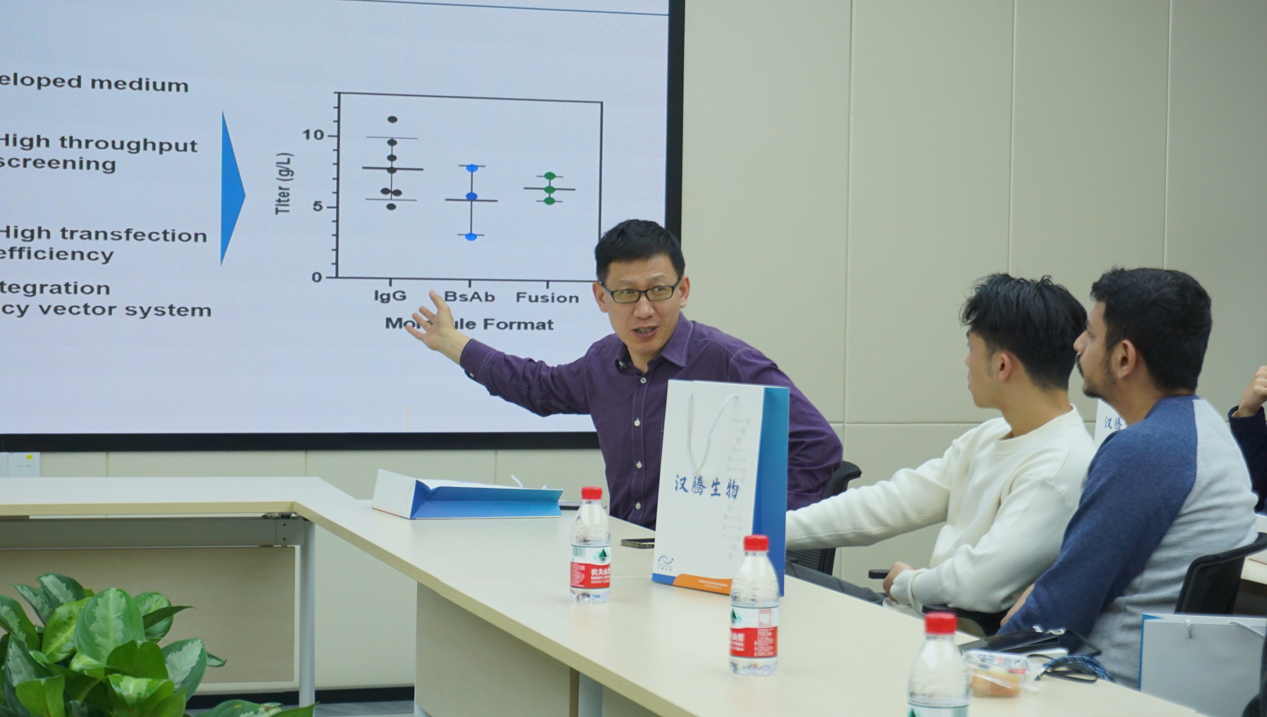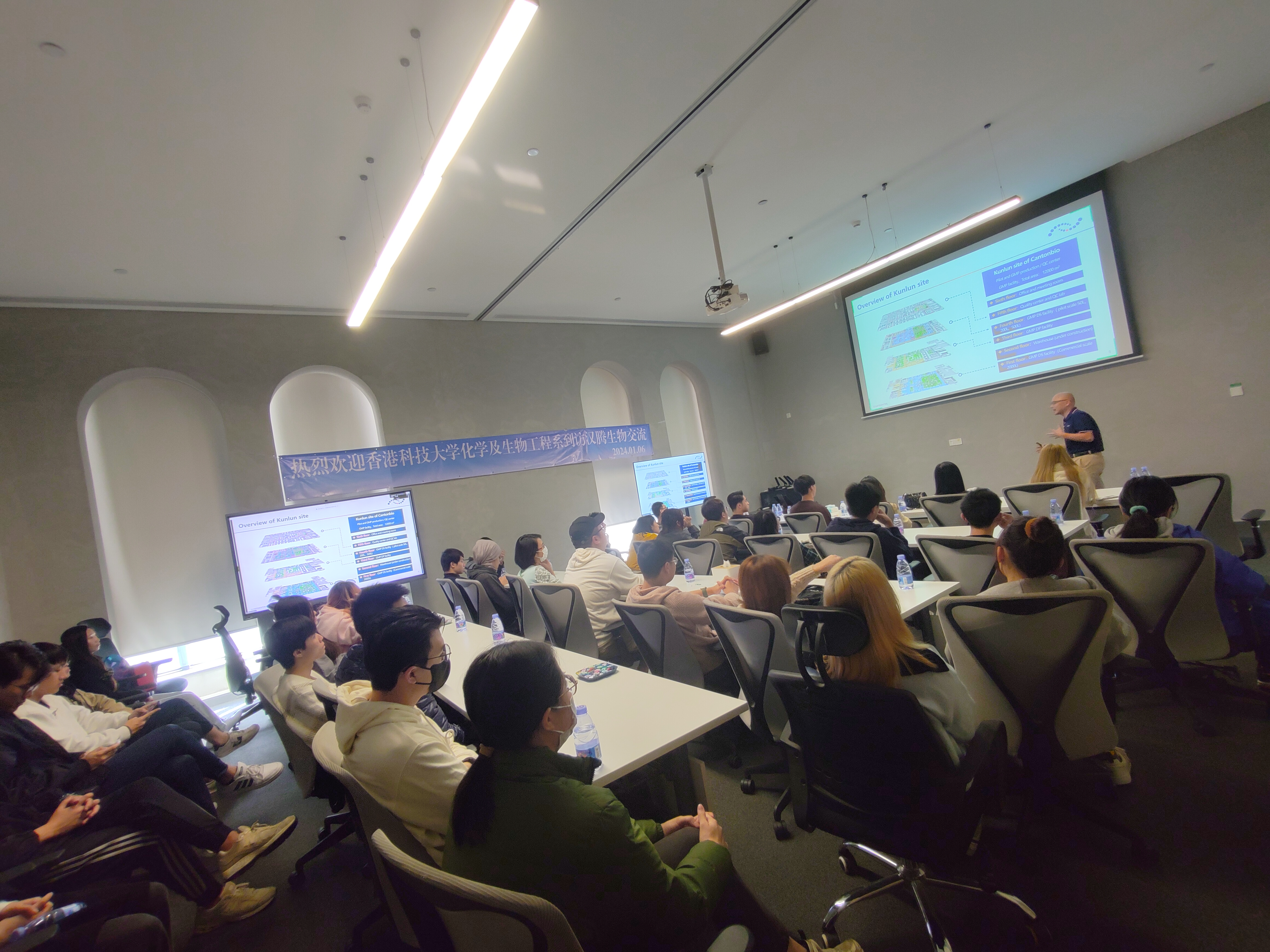 2024年1月5-6日,香港科技大學(xué)劉元帥教授帶領(lǐng)40多名來自化學(xué)與生物工程系的師生到訪漢騰生物(Canton Biologics), 副總裁張春華先生代表漢騰高管團(tuán)隊(duì)熱情接待了來訪嘉賓并作歡迎致辭。這是繼2023年10月漢騰生物CEO沈?yàn)t博士在香港科大舉行專題演講交流后,雙方的又一次深度的合作互動(dòng)和探討。