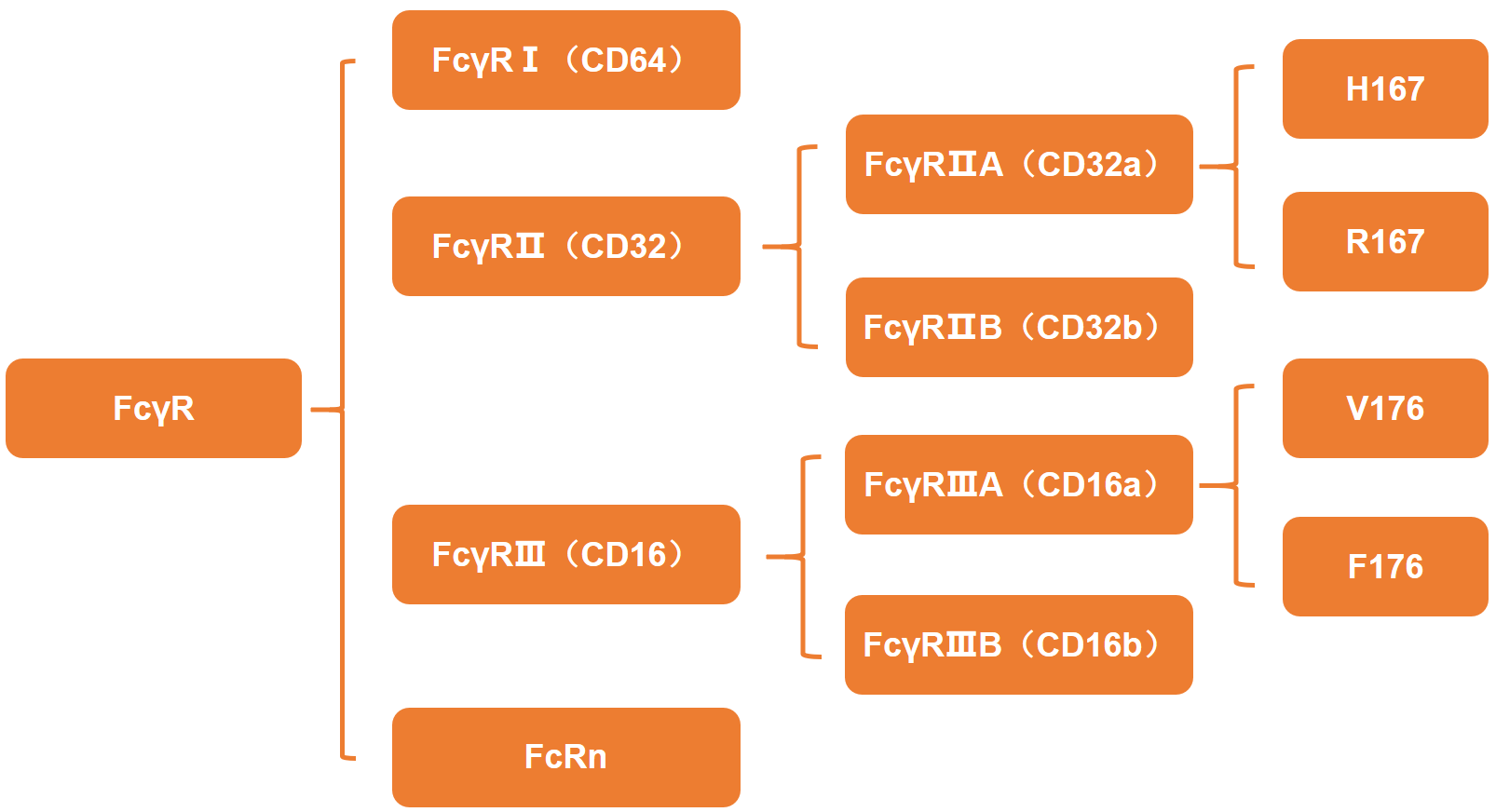 ADCC主要通過抗體與效應細胞 (如NK細胞) 上的FcγRIIIA (CD16a) 結(jié)合而發(fā)揮對靶細胞的殺傷作用;ADCP主要通過抗體與效應細胞(如巨噬細胞、中性粒細胞和樹突狀細胞等)上的FcγRI (CD64)、FcγRIIA (CD32a) 或FcγRIIIA (CD16a) 結(jié)合而發(fā)揮對靶細胞的吞噬作用,其中FcγRIIa (CD32a)被認為是參與這一過程的主要Fcγ受體。