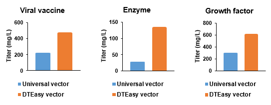 ? 設(shè)計(jì)多拷貝載體或?qū)S幂d體:針對(duì)不同類(lèi)型的重組蛋白,通過(guò)選用多拷貝載體或定制的難表達(dá)蛋白專(zhuān)用載體,可提升100%-400%的蛋白產(chǎn)量。